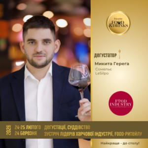 Освічений та досвідчений сомельє премільного ритейлера України Микита Герега, сомельє делікатес-маркетів Le Silpo у складі незалежних та неупереджених дегустаторів Favorite Food&Drinks 2026