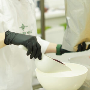 Технолог вивчає питання, консультується з постачальниками і колегами. Далі закуповуються всі можливі види протеїну, які можна поєднати з нашим продуктом. Робляться зразки, які ми досліджуємо: як інгредієнти тримаються разом, які строки придатності. Є багато нюансів: деякі форми протеїну не можна запікати, інші не поєднуються з медом. Після того, як визначились з видами протеїну, ми внутрішньо в команді провели тестову групу. Як поєднується, чи не псує смак і запах, і так далі.