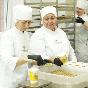 З самого початку ми мали ідею з напиленням меду на вівсяні пластівці, щоб не використовувати цукор. За технологією мед нагрівається зовсім трохи — до температури, яка не дозволяє йому виділяти шкідливі речі.